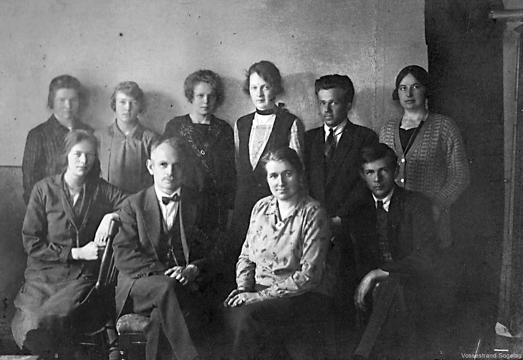 Bak fv. Agnes Rygg, Olina Rygg, Marta Rygg, Ingeborg Rygg, Lars Rygg, Ragnhild Rygg.. ff.v Anna Rygg, Olav Larsson Hauge (far), Anna Nilsdtr Hauge (mor), Knut Rygg. Dei budde på Rygghaugen.