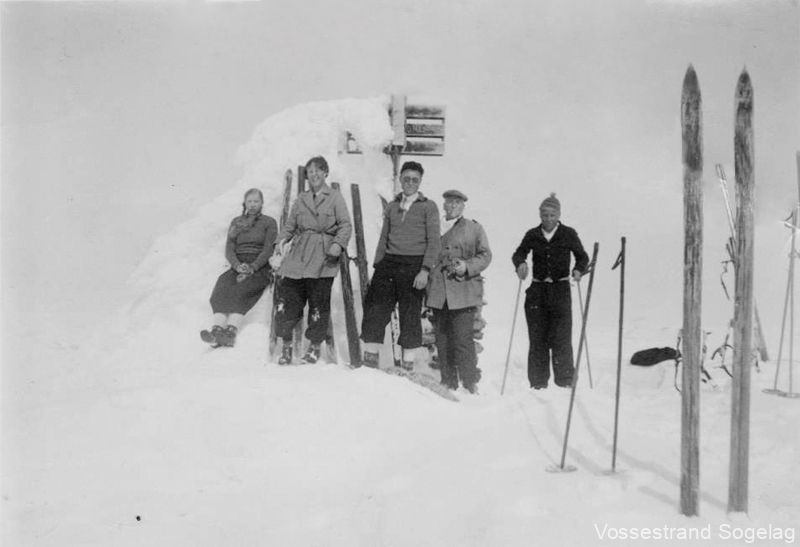 Skitur, mest truleg er bilet teke på Bjørndalskamben midt på 1930 talet.