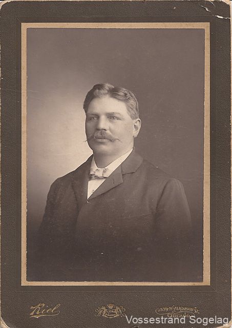 Ola Larsson "Uthus`n" 1863 -g. i Am. m. Kari Nilsdtr Bidne S Chicago. USA.Selje 40j i gamle ættaboka for Vossestrand