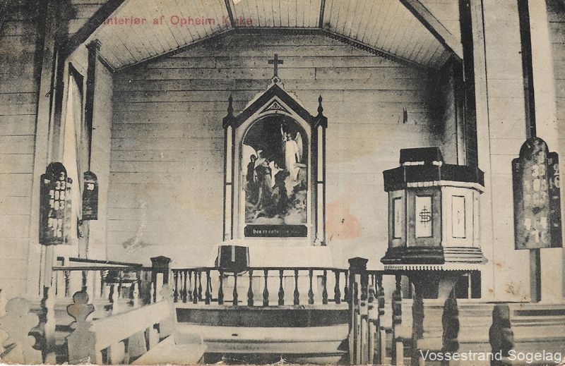 Interiør i Oppheim kyrkje, Vossestrand.