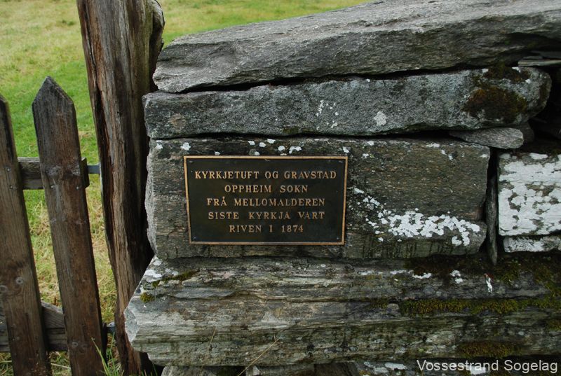 Kyrkjetuft og Gravstad, Oppheim sokn. Frå mellomalderen. Siste kyrkja vart riven i 1874